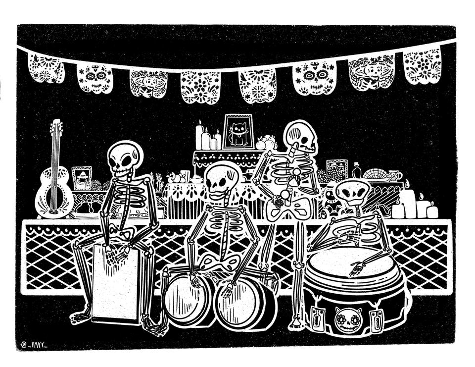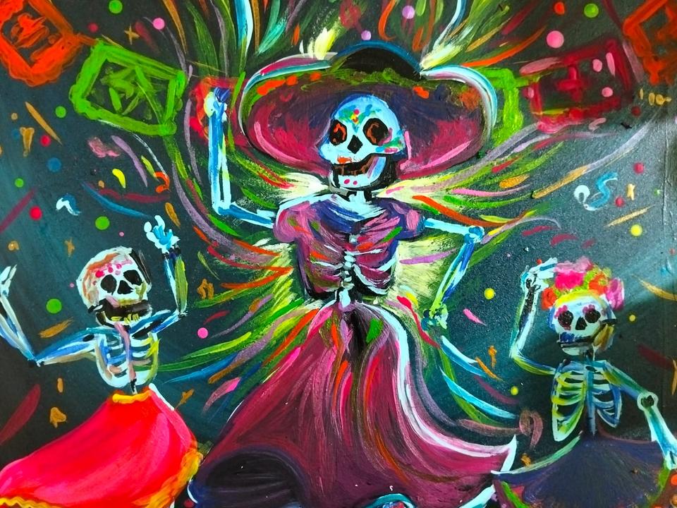 Se destaca la celebración alegre y festiva que caracteriza el Día de Muertos en México. Las obras rinden homenaje a los seres queridos fallecidos, celebrando su memoria y legado.